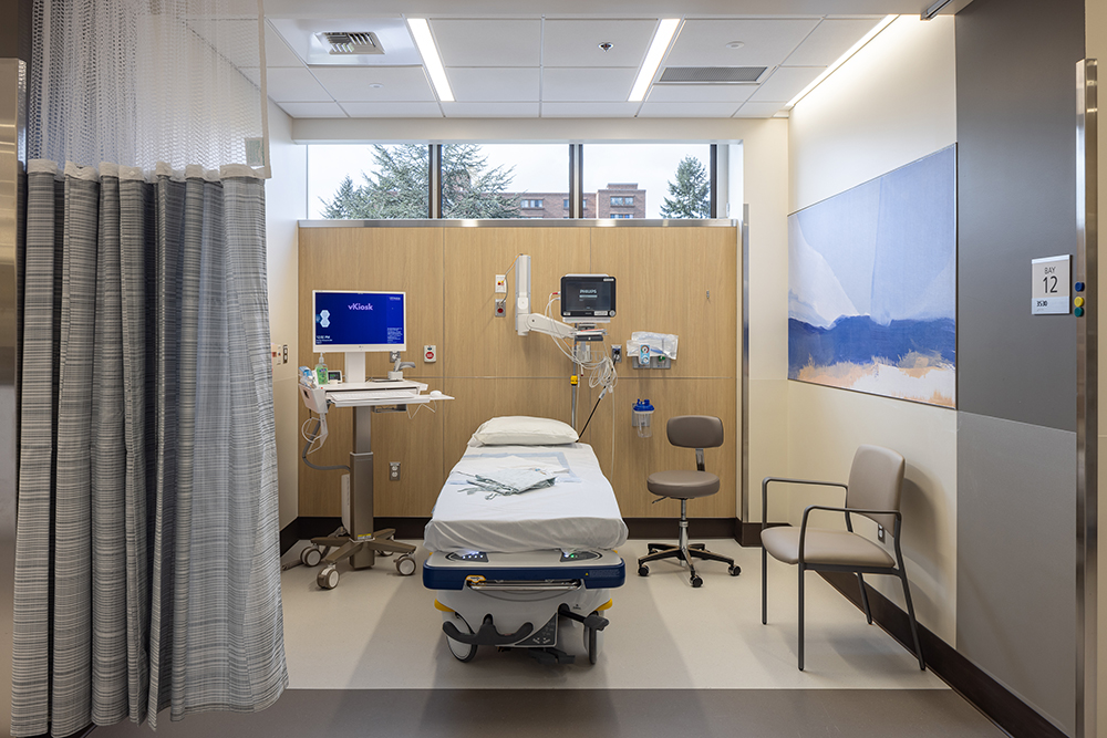 A new 13,000-square-foot clinic at the Outpatient Medical Center (OPMC) provides procedural and clinic space for the expanded care needs of gastroenterology patients at UW Medical Center. The renovation project includes eight exam rooms, four endoscopy procedure rooms, and 12 prep and recovery spaces. It also includes scope washing and storage, clinical support spaces for both procedures and staff, telehealth capabilities, restrooms, breakroom, and infrastructure upgrades to meet programmatic needs.